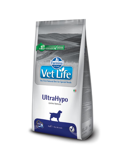Farmina Vet Life UltraHypo contiene, come unica fonte di proteine, idrolizzato proteico a basso peso molecolare (6.000 dalton), amido raffinato di riso, olio di pesce al fine di garantire l´assenza di fattori che più frequentemente sono responsabili di reazioni allergiche. L’impiego di proteine idrolisate, che sfuggono all´intercettazione da parte del sistema immunitario periferico, e di amido raffinato evitano l´insorgenza ed attenuano la sintomatologia in caso di reazioni allergiche.